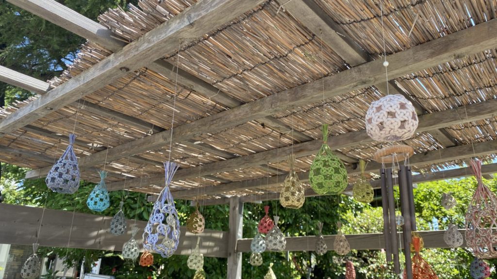 敷地には水引を使った風鈴。かわゆし。